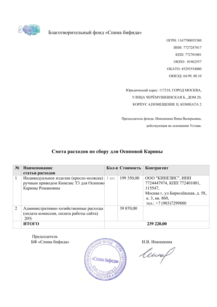 Фонд передал Карине коляску в рамках проекта ТСР, но коляска не подходит девочке по размерам, и ножки не стоят удобно на подножке. Та коляска, которую изготовят, благодаря вашим пожертвованиям, будет сделана специально по замерам Карины, будет самая удобная и безопасная.