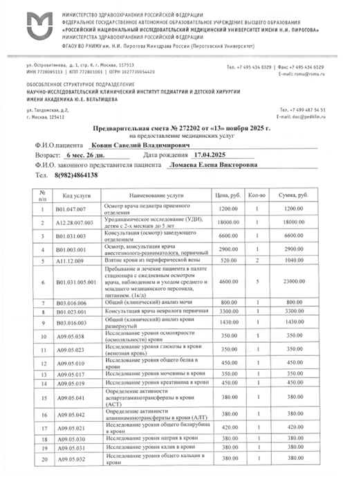 Сегодня Савелию требуется плановое обследование в Центре Spina bifida в Москве, чтобы врачи могли оценить состояние его здоровья, определить, как развивается малыш, и скорректировать лечение. Это обследование очень важно — оно позволит вовремя заметить изменения, подобрать нужную терапию и поддержать здоровье Савелия.